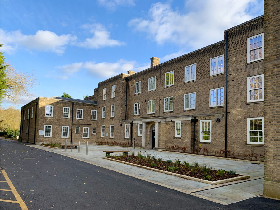 This photograph also taken from Maber Architects' website shows the main entrance to the building taken from Florence Boot Close looking back towards Cut Through Lane. |