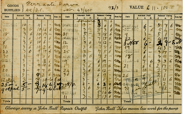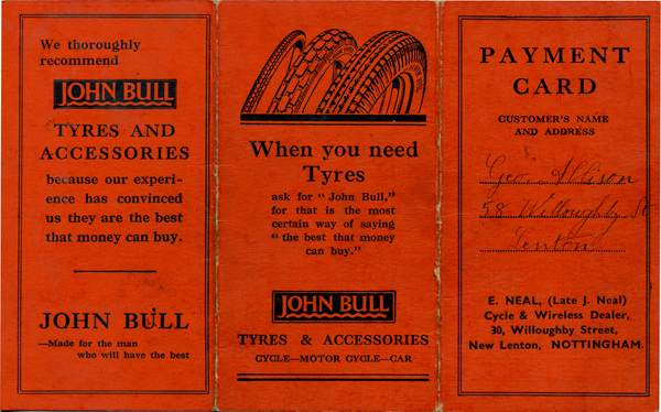 Courtesy of Ebay we recently [2013] acquired a customer's payment card belonging to George Allison of 58 Willoughby St, Lenton. As the payment card reveals Mr Allison had acquired a new Ferranti Parva AC/DC radio from E. Neal (Cycle & Wireless Dealer) of 30 Willoughby Street, New Lenton. The radio cost £11 10s. and an initial payment of 10 shillings had been made on 5 December 1936. According to the payment card Mr Allison then continued to make regular payments until early 1938 when the radio was finally his.
