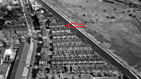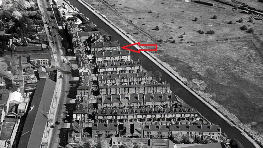 In this 1946 aerial photograph the red arrow shows the location of Charlton Street which was a short section of roadway lying off Castle Boulevard. It disappeared in the very early 1980s to allow for the construction of the bridge over the canal providing access to the Castle Marina site. |
