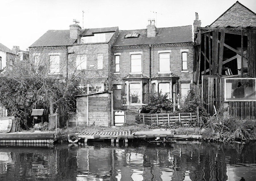 This 1975 photograph shows Rose Cottages, a set of properties abutting on to the canal with access from Castle Boulevard - located to the east of Charlton Street. They would also be demolished in the early 1980s. |
