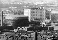 An aerial view showing part of the Raleigh Factory premises situated on Faraday Road with the gasworks and the bonded warehouse complex dominating the middle distance of the photograph probably taken in the 1950s or 60s. |