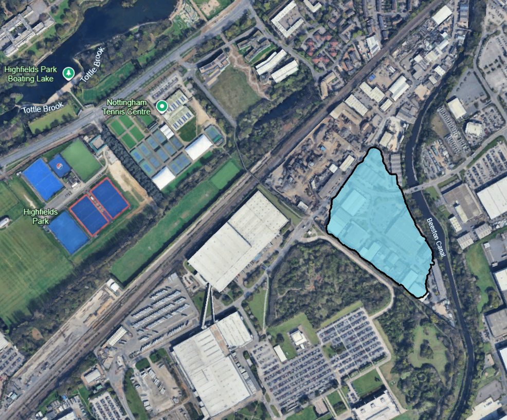 This is the 1968 Ordnance Survey map featuring the Police Pond which we have highlighted in blue. Also featured prominently on this map is part of the Beeston railway sidings which stretched from Beeston as far as Dunkirk. Lying immediately to the east of the pond is a stretch of the Beeston Canal. |