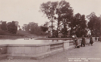 One of my boyhood friends was David Palin and his father was the Park Superintendent. David's Mum, Edith, worked on the boats with George Horton and also did secretarial work in the Park Office. Highfields was our playground; amongst other things we used to use the band stand area as a roller hockey pitch. In 1946 one of the local newspapers took a photograph of us playing there which should be still in their archives. We used roller skates, a tennis ball and walking sticks. This is now the 'in' game and I like to think we invented it decades before it eventually became popular. During the War the large grass area in front of the Lido (pronounced Liedo by us unsophisticated locals - Leedo by visiting cousins from London!) was converted to allotment gardens. In August 1953 I started working in the park as a stepping stone on my hoped-for-career in horticulture. I worked for a year on the lakeside side of the park - the ornamental side. That year during the winter the lake froze over and there was public skating. The lights around the lake were restored and illuminated it in the evening. The effects of wartime were still apparent and I don't think the lights had been on since before the war. The students used to cause us consternation with their end of term activities. Jesse Boot's bust at the Entrance to the park would irreverently receive a dousing of paint amongst other things.