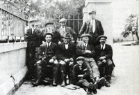 This is a somewhat earlier photograph of Highfields park ground staff taken in 1930. Off to the right of the picture is the edge of the lake. The stonework you can see is still very much with us although the railings have gone. They were probably taken away to be melted down during the Second World War. |