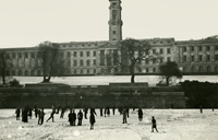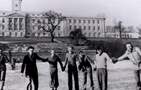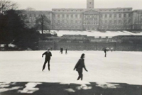 Students pictured on the ice in 1947. A copy of this photograph is now archived with the University Manuscripts and Special Collections now to be found on the King's Meadow campus. |