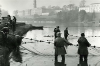 This is an undated image but, given the presence of the Portland Building on the far right, it must be taken in 1956 or later. In the early years of the park Sir Jesse Boot permitted the Trent Fishery Board to net some of the fish from the lake so they could be used to restock other stretches of water across the East Midlands. The arrangement was continued by Nottingham Corporation and these men probably worked for the organisation that eventually took over from the Trent Fishery Board. |