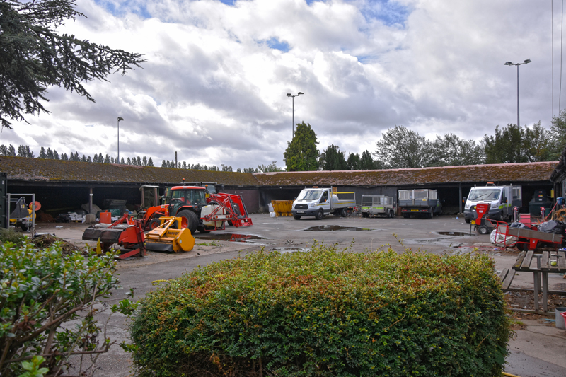 While the buildings may date back to the 1920s the park's equipment and range of vehicles clearly date from the twenty-first century. Photograph by Paul Bexon in 2016. |