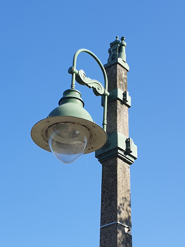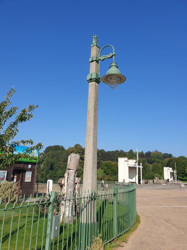 This example of an original lamp standard would have been installed in the park at the same time as other similar lamp standards were erected on University Boulevard - namely 1927. After looking derelict and unwanted for many years the original gas lamp has been replaced during the refurbishment by an electric version. |