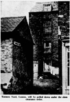 This 1959 photograph featured in the Nottingham Evening News following the announcement that Nottingham Corporation had received government approval for the compulsory purchase and subsequent demolition of a number of properties across Nottingham. One of these demolition areas involved some of the properties based on Leen Gate including the block of maisonettes called Tanners Yard. Part of the Tanners Yard properties can be seen in this newspaper photograph. |