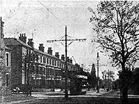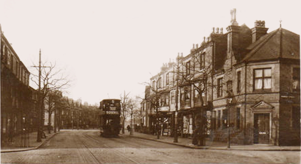 The same building in the early 1900s. The tram is on its way along the Boulevard to Radford and the terminus on Hartley Road. |