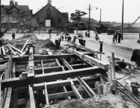 An undated view of the junction of Lenton and Castle Boulevards. Sewer works is clearly underway in the foreground which must have meant the temporary closure of the tram route until the work had been completed. Over on Castle Boulevard is the old tin chapel now housing Clement Pianos which suggests the photograph may well have been taken some time in the 1920s. |