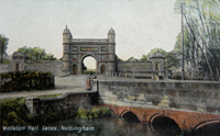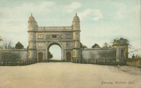 Although it never seems to feature in any of our photographs there was a more prosaic entrance to Wollaton park located to the right of the gatehouse. This would be used by any tenant farmers who had rented some of the parkland from the Middleton estate as pasture for their animals. The current pedestrian and cycle route alongside the gatehouse through to Charnock Avenue would originally have taken you to this second entrance. |