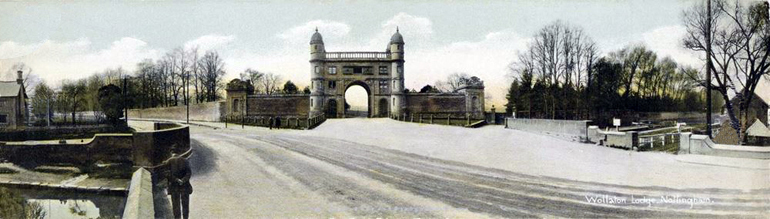 In the early nineteenth century Henry, 6th Lord Middleton resolved to extend the eastern boundary of the park surrounding Wollaton Hall. His plan was for the park to stretch as far as the Nottingham Canal which had appeared on the scene in the 1790s. He also gained a little extra portion of parkland at its southeast corner by moving part of the Derby Road southwards. Bricklayers were engaged to construct a new wall around the outside of the newly enlarged park. Lord Middleton had also decided that the main entrance to his park should have a gatehouse, an imposing edifice that would echo the style of the Hall itself. He engaged Sir Jeffry Wyatville to design and oversee its construction which took place in the early 1820s.