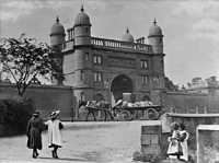 It is not clear whether this charabanc party were intent on going on into Wollaton park in 1928 or whether they were going elsewhere and the photographer thought the gatehouse was just a suitable backdrop for his photograph. |