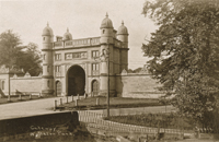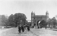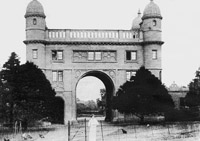 The central archway provided vehicular access to the park and an underground winding mechanism enabled the main gates to be closed when required. These gates were designed to prevent troublemakers from gaining access to the hall. |