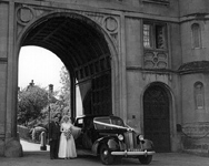 "I lived at Lenton Lodge at that time. It was my wedding day May 1st 1956. With me is my brother Arthur Beal, he gave me away because my father was killed in the second world war. My marriage to Barrie Fines took place at St Marys Church on Wollaton Hall Drive, I could have walked there it was so close to the Lodge but of course that was not done and Burley Fox who drove and owned the beautiful Black Daimler had to drive around the block. I loved living at the Lodge." |