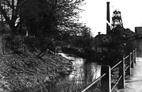 Looking southwards in 1972 is the River Leen as it passes Radford Colliery. Radford Colliery was operational from 1898 to 1964 and prior to nationalisation was owned by Wollaton Collieries Ltd. |