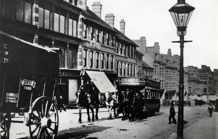 In the years prior to the introduction of Nottingham's horse trams those wishing to travel by road into and out of town could choose one of several means of conveyance. Throughout the week carriers' carts would be travelling to neighbouring towns. Passengers could arrange to get a lift and for a pre-arranged fee would be taken part or all the way along the route. Private operators gradually found it profitable to provide regular services for the public between specific locations. For instance as early as 1853 a horse bus ran three times a day between the Black Boy lnn on Long Row and Arnold. Other services operated from the Shoulder of Mutton on Smithy Row to Beeston and Bingham. No doubt those in Lenton could avail themselves of the Beeston service. The well-to-do might use their own pony and trap while for the less well-off there was always 'Shanks's Pony`.