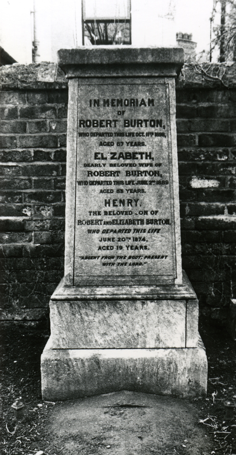 BURTON, Henry, son of the above, died 20 June 1874 aged 19