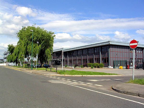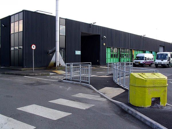 At the end of Willow Road is based the depot for all the Social Services vehicles of the City Council. Quite a striking building - with its black and bright green colour scheme. |