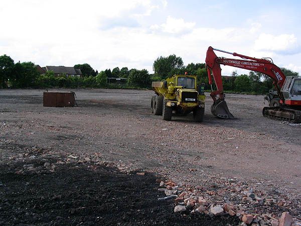 In earlier times this photograph would have shown the Willow Road base of Stirlands, which later became part of T.D.G. (Transport Development Group). Housed here was a transport depot, workshops i.e. garages, spray booths and warehouse storage facilities. The site was closed in 2002 and the premises remained unoccupied until subsequent demolition, shortly before this photograph was taken in May 2004. |