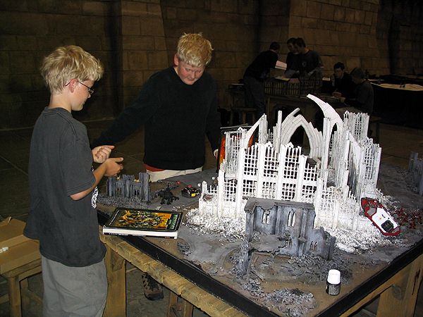 The building in the previous photograph now serves as the main offices for Games Workshop. This shot shows the entrance to the office block with the huge figurine guarding it from enemy attack. |